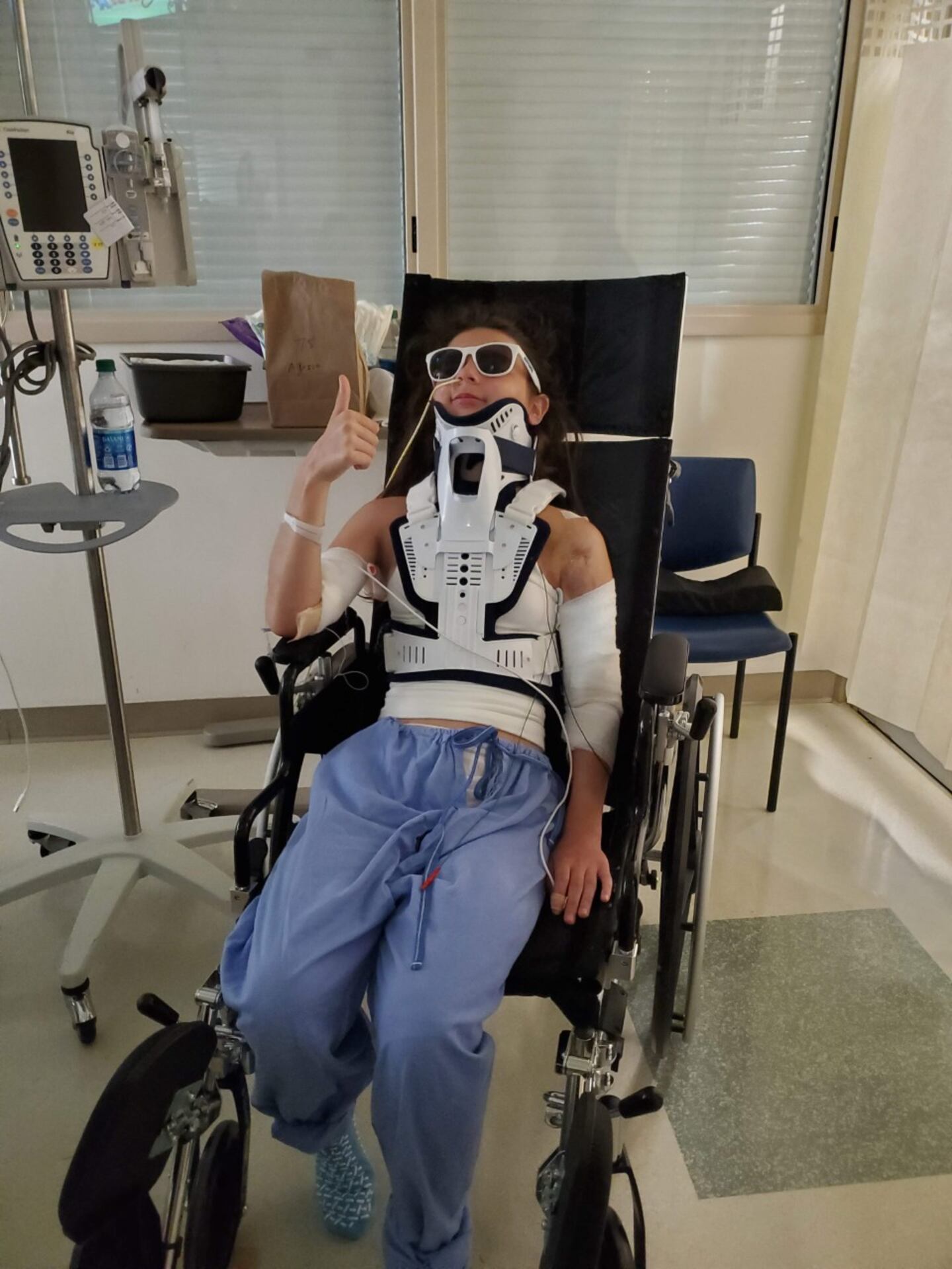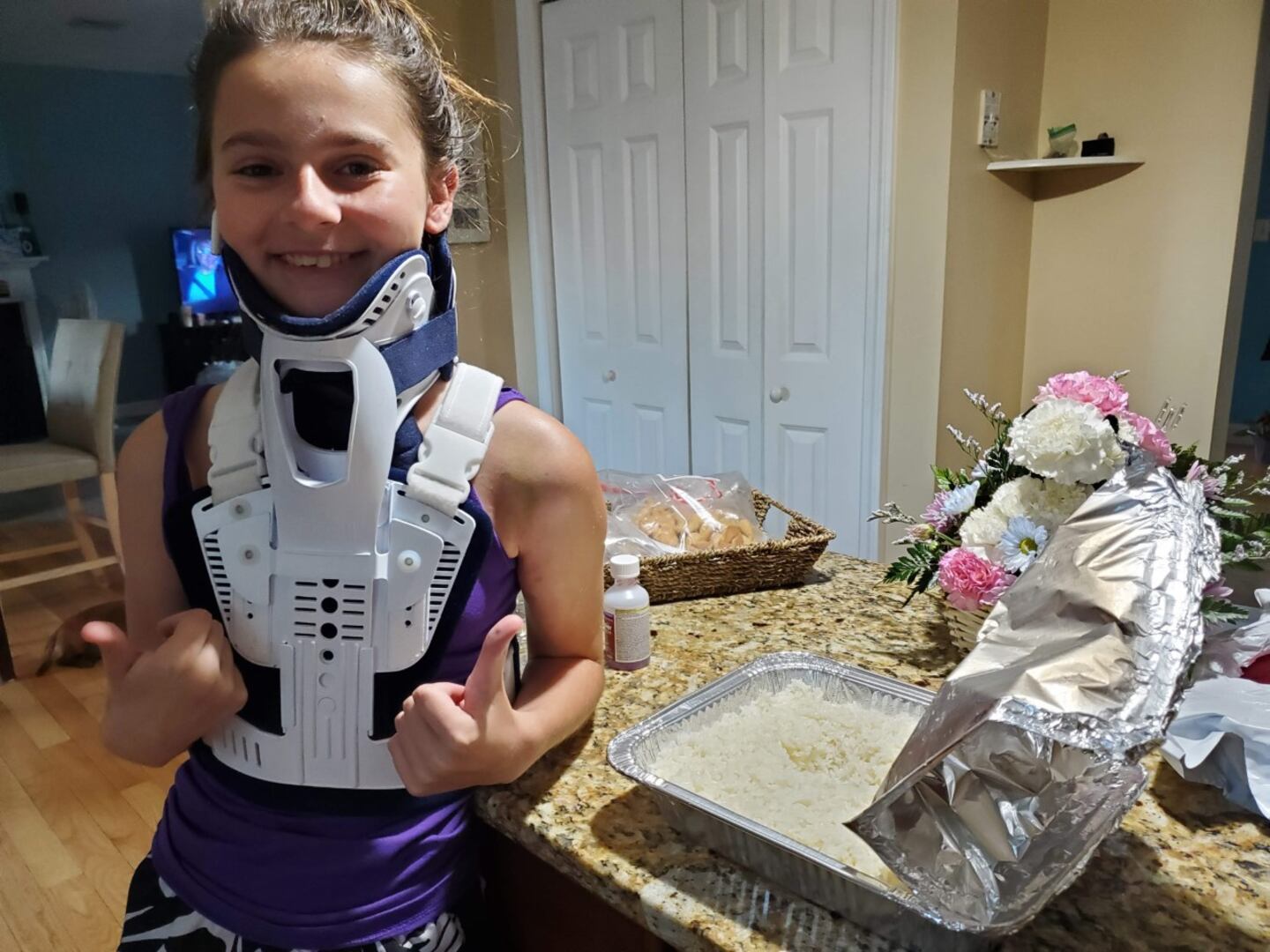 The 13-year-old, who is going into 8th grade at Raynham Middle School, was struck by a vehicle while sunbathing in her driveway in May of 2020. Her injuries were so severe, she was flown by medical helicopter to Boston Children’s Hospital. Lily spent 12 days there, including 5 in the ICU. Her mother, Helena Moreira, said Lily spent months rehabbing.