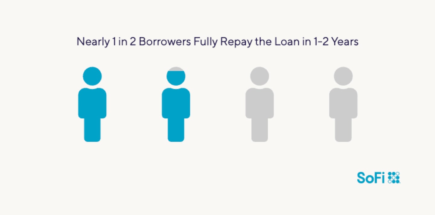 - 30% of people with three- to four-year terms were able to pay off their loans in two years or less.