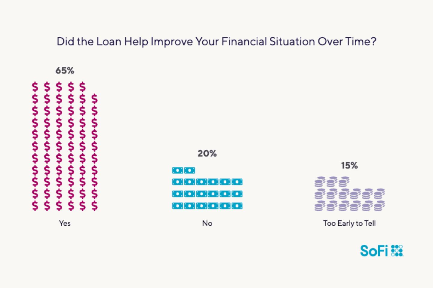 Almost two-thirds of survey participants said that, over time, their loans helped improve their financial situation. Fifteen percent, or about 1 in 7 people, aren’t ready to make that judgment yet.