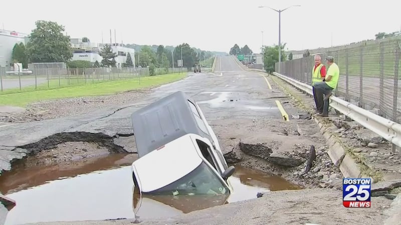 RAW VIDEO: Sky25 in Worcester where a water main break caused floodingWATCH: Truck crashes into sinkhole created by Worcester water main break https://boston25.com/2KzRnYn