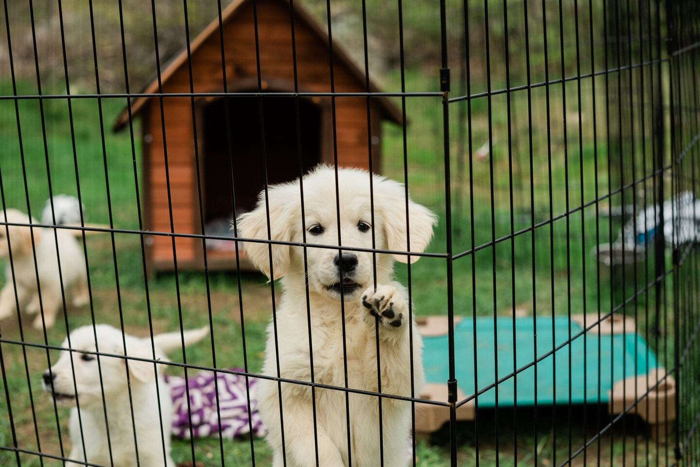 Furry yellow faces, wagging tails -- so many golden retrievers all in one place. But all the golden retriever happiness comes at a price. These dogs -- more than a dozen breeding females, four males, and nine puppies -- were all rescued last week from a Massachusetts backyard breeder.