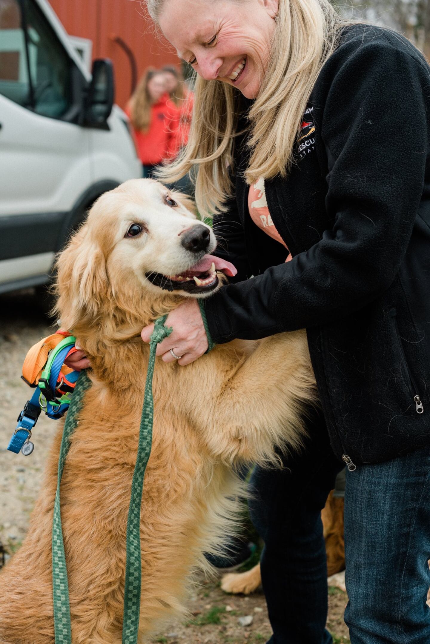 Sweet Paws volunteer Dan Downey picked up all 28 golden retrievers from the same breeder.