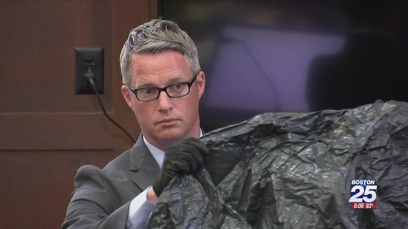 The jury got a close-up look at the trash bags Bella was double-wrapped in, along with blankets and the duffel bag the prosecution says was weighted down with plates similar to some discovered in McCarthy’s father’s Quincy plumbing shop.