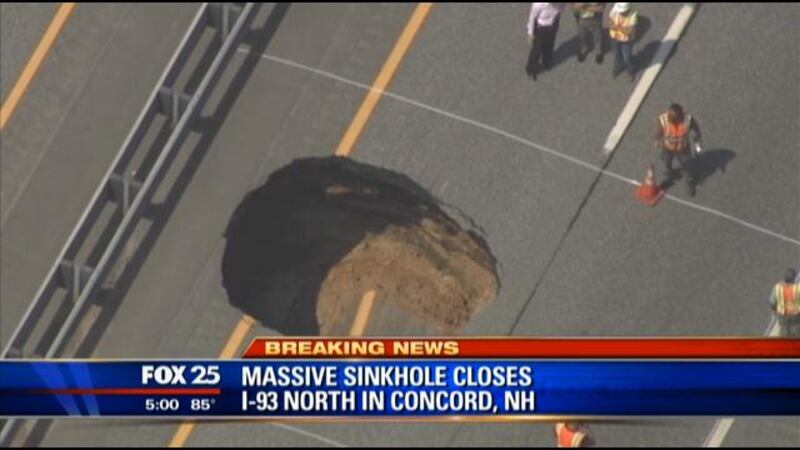 CONCORD, N.H. (MyFoxBoston.com) - Travelers heading northbound on I-93 into New Hampshire Wednesday afternoon and evening dealt with severe traffic after a sinkhole opened up in Concord and an arrest at the scene caused even more of a curiosity delay.
