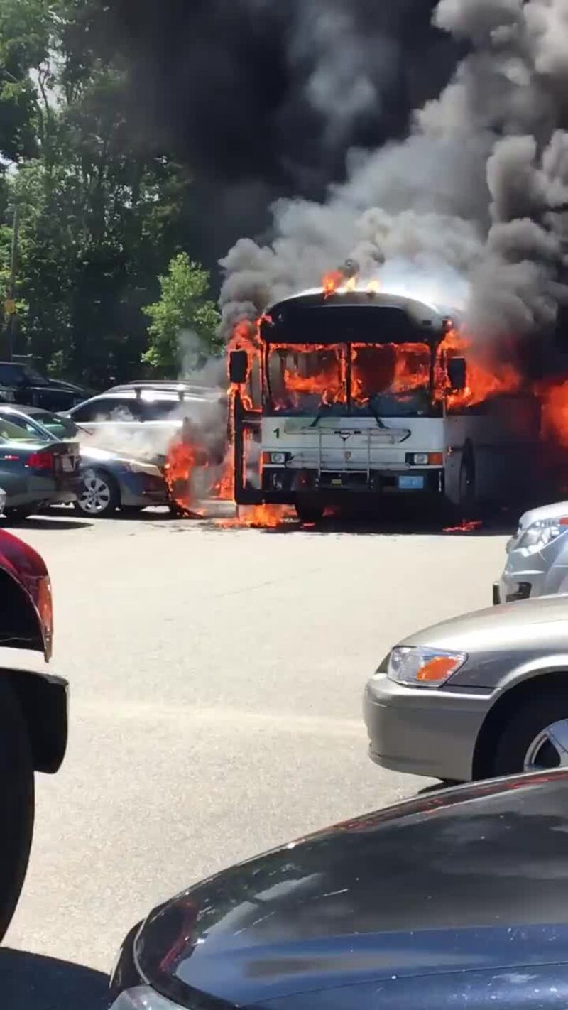 The driver of another bus alerted the driver that smoke was coming from the back of the vehicle. The driver the turned the bus around and as they made it back to the parking lot, they saw the fire start.