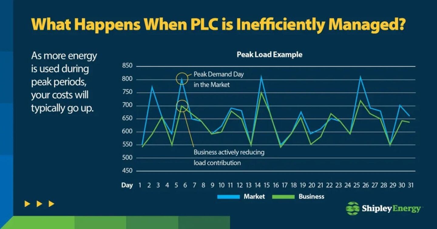 PLC refers to your business’ share of energy use during the highest demand periods on the electricity grid—usually on the hottest days of summer. Utilities use this figure to calculate your portion of capacity charges, which are a major part of your total electricity costs. In essence, the higher your energy use during these peak periods, the larger your share of the grid’s maintenance and operational costs, and the higher your bills are for the next 12 months.