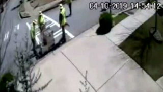 Surveillance footage from Miller’s security camera shows a group of workers painting the crosswalk while he was away.