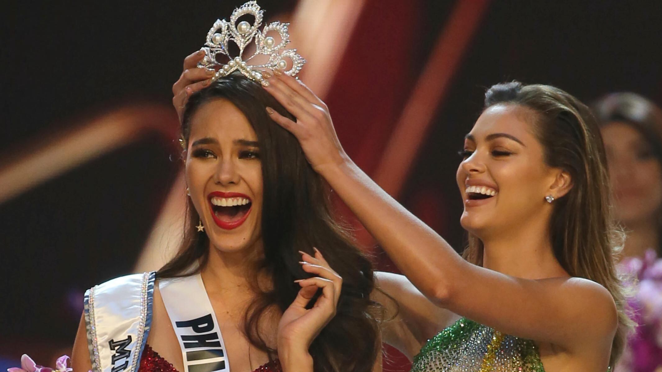 Catriona Gray of the Philippines, left, reacts as she is crowned the new Miss Universe 2018 by Miss Universe 2017 Demi-Leigh Nel-Peters during the final round of the 67th Miss Universe competition in Bangkok, Thailand, Monday, Dec. 17, 2018.