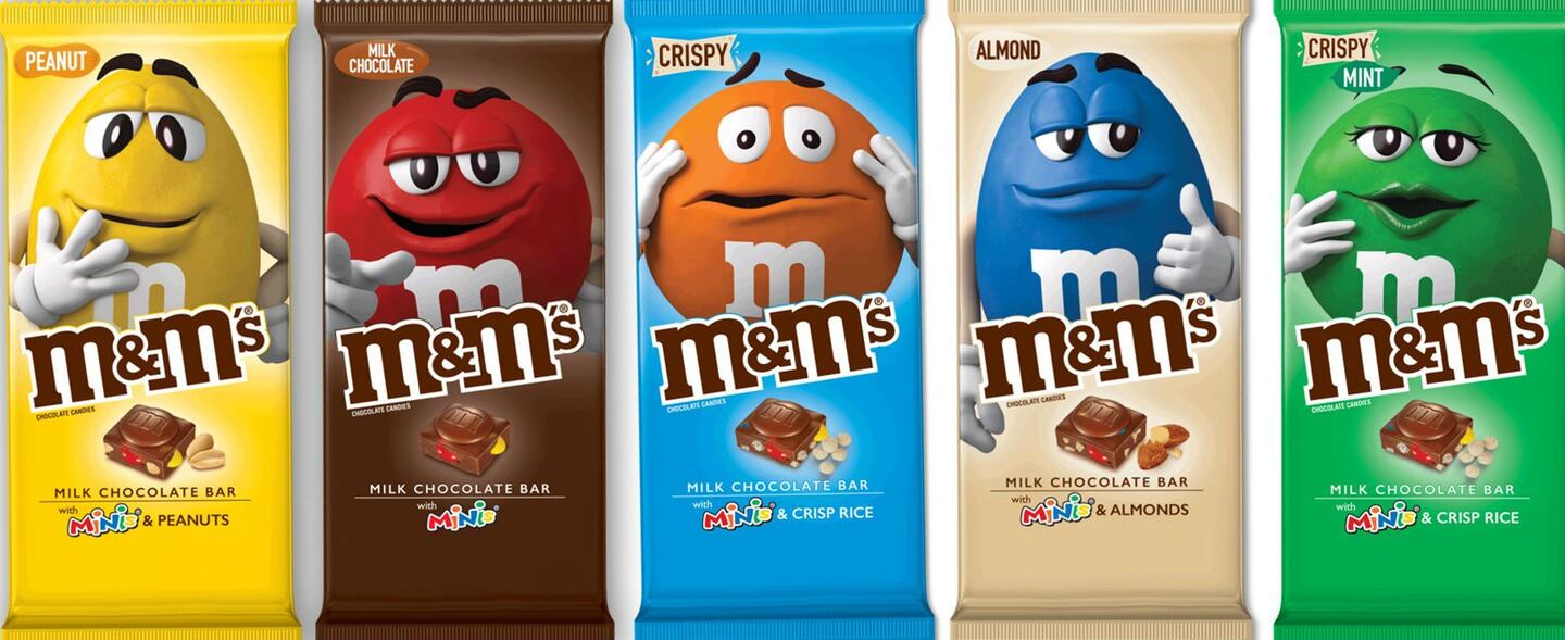 M&M's Chocolate Bars feature M&M's minis spread throughout a milk chocolate bar. The bars will come in five varieties: Peanut, Milk Chocolate, Crispy, Almond and Crispy Mint. The bars will be available beginning December 2018, M&M's said in a news release.