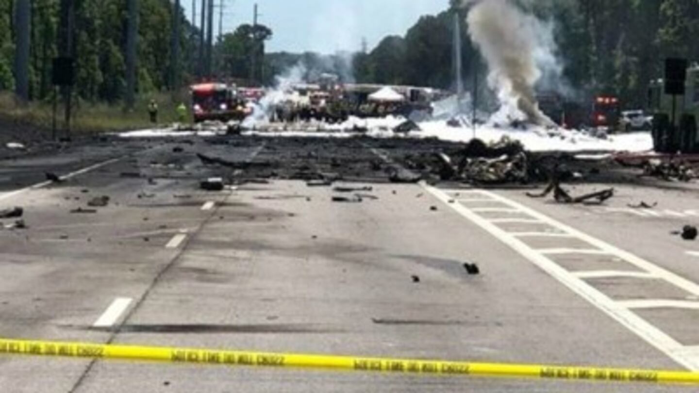Its fuselage appeared to have struck the median, and pieces of its wings were scattered across lanes in both directions. The only part of the plane left intact was a tail section, investigators said.