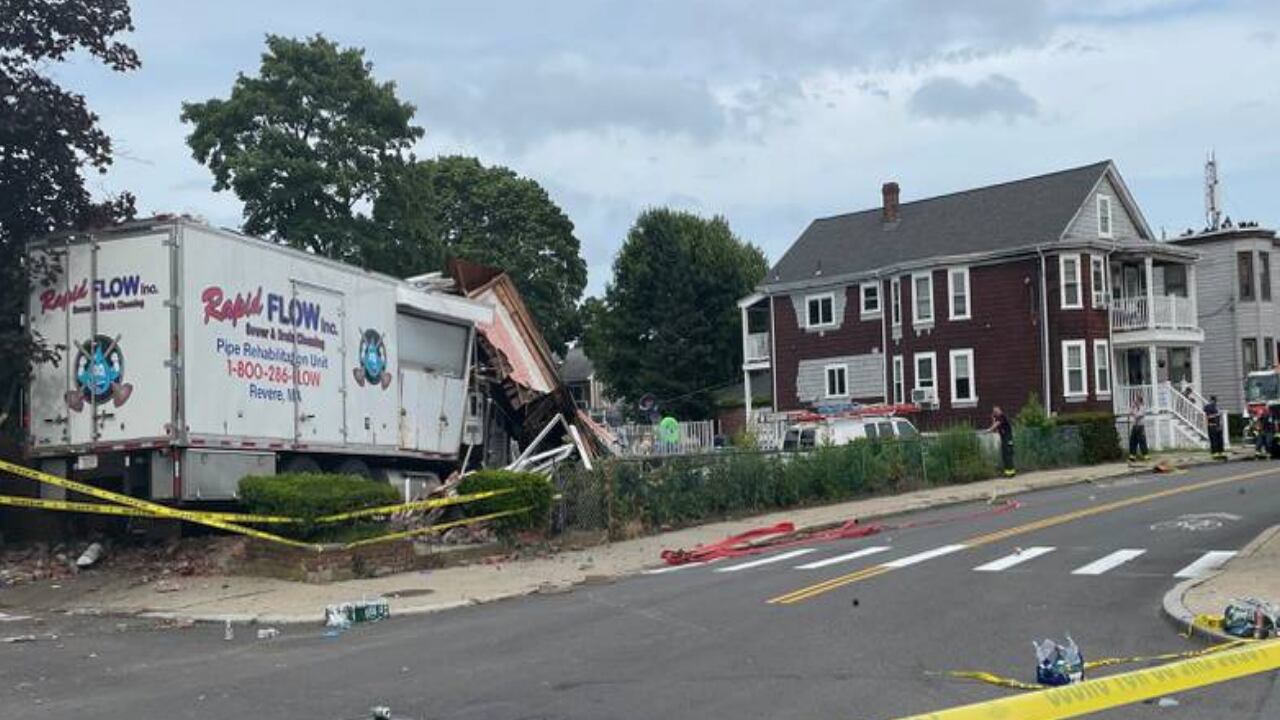 Original report: According to a news release, police in Winthrop, Massachusetts, received reports that a large truck had crashed into a building, followed by shots fired, at about 2:41 p.m. EDT.