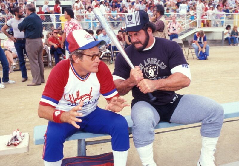 Bo Hopkins through the years VALLEY GLEN, CA - JUNE 24: Actor Bo Hopkins and athlete Lyle Alzado attend the Los Angeles Raiders vs. Hollywood All-Stars Celebrity Softball Game to Benefit People Helping People on June 24, 1984 at the Los Angeles Valley College in Valley Glen, California. (Photo by Ron Galella, Ltd./Ron Galella Collection via Getty Images) (Ron Galella/Ron Galella Collection via Getty Images)
