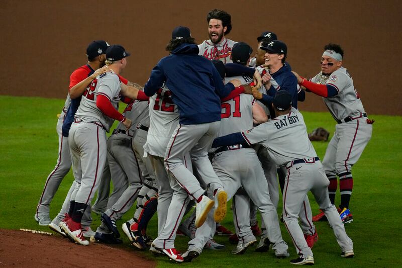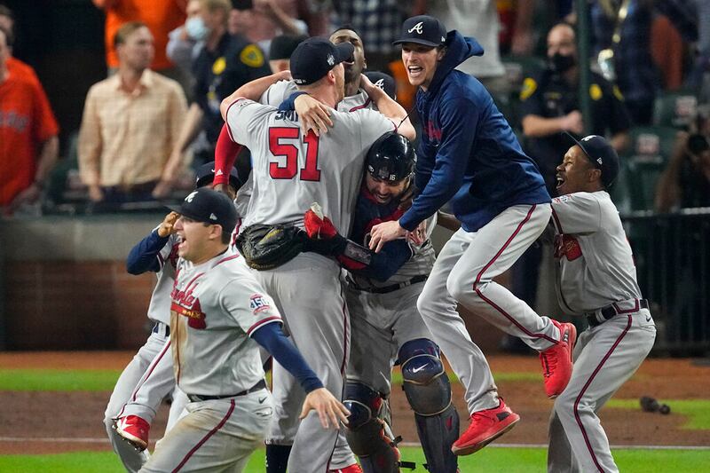 Atlanta Braves win 2021 World Series The Atlanta Braves celebrate after winning baseball's World Series in Game 6 against the Houston Astros Tuesday, Nov. 2, 2021, in Houston. The Braves won 7-0. (AP Photo/Ashley Landis) (Ashley Landis/AP)