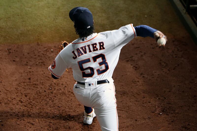 Atlanta Braves win 2021 World Series HOUSTON, TX - NOVEMBER 02: Cristian Javier #53 of the Houston Astros warms up in the bullpen during Game 6 of the 2021 World Series between the Atlanta Braves and the Houston Astros at Minute Maid Park on Tuesday, November 2, 2021 in Houston, Texas. (Photo by Michael Starghill/MLB Photos via Getty Images) (Michael Starghill/MLB Photos via Getty Images)