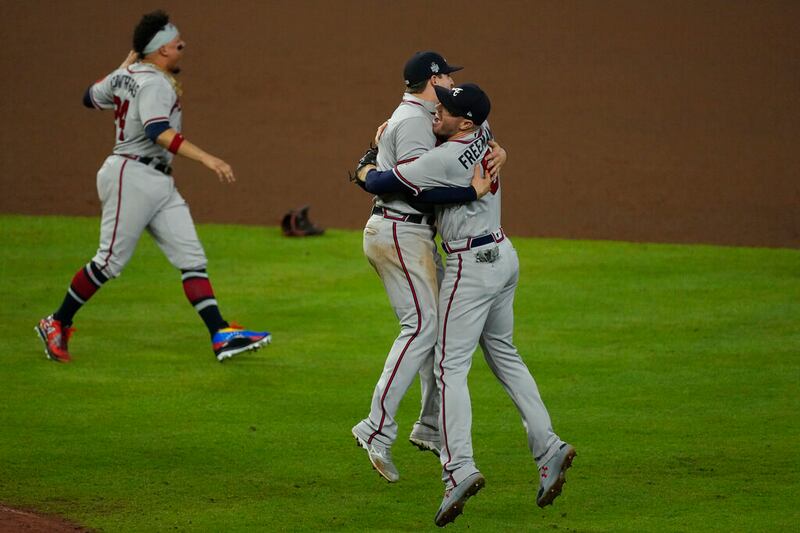 Atlanta Braves win 2021 World Series Atlanta Braves first baseman Freddie Freeman hugs relief pitcher Will Smith after winning baseball's World Series in Game 6 against the Houston Astros Tuesday, Nov. 2, 2021, in Houston. The Braves won 7-0. (AP Photo/David J. Phillip) (David J. Phillip/AP)