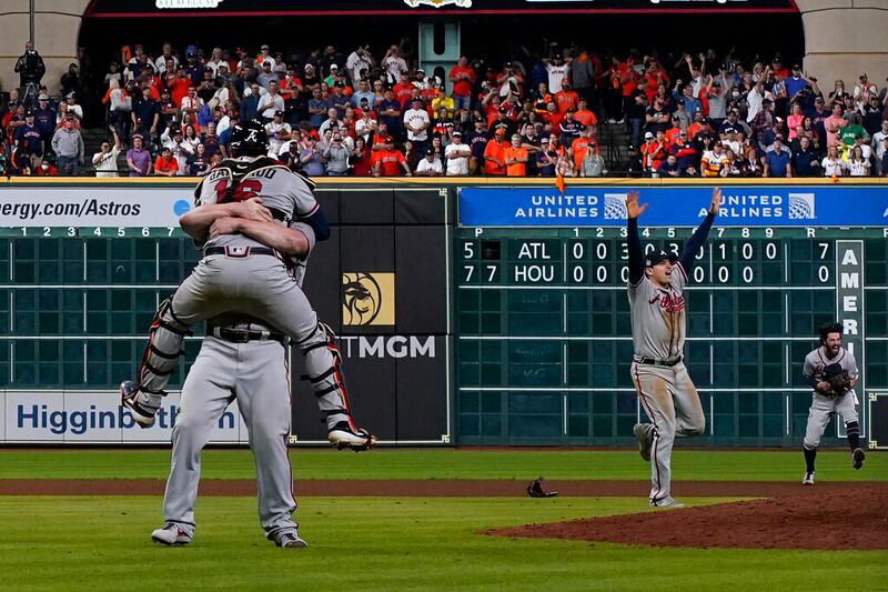 HOUSTON — The Atlanta Braves trounced the Houston Astros 7-0 in Game 6 of the 2021 World Series on Tuesday night, winning their first Major League Baseball championship series since 1995.
