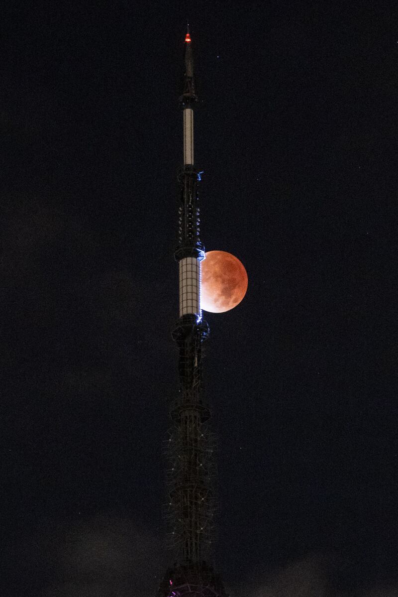 Photos: Beaver moon lunar eclipse delights skygazers The moon is seen during a lunar eclipse next to the One World Trade Center in New York early on November 19, 2021. (YUKI IWAMURA/AFP via Getty Images)