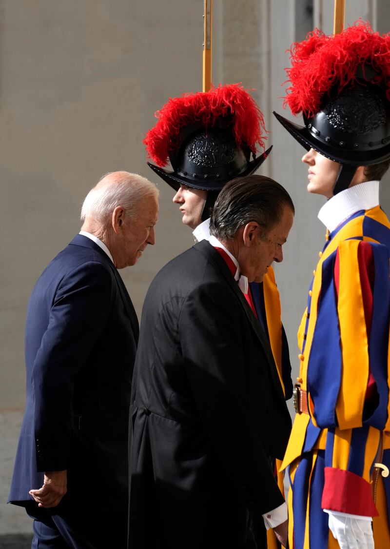Photos: Biden arrives at Vatican for meeting with Pope Francis The Swiss Guards prepare for the arrival of U.S. President Joe Biden for a meeting with Pope Francis at the Vatican on Friday, Oct. 29, 2021. (AP Photo/Andrew Medichini)