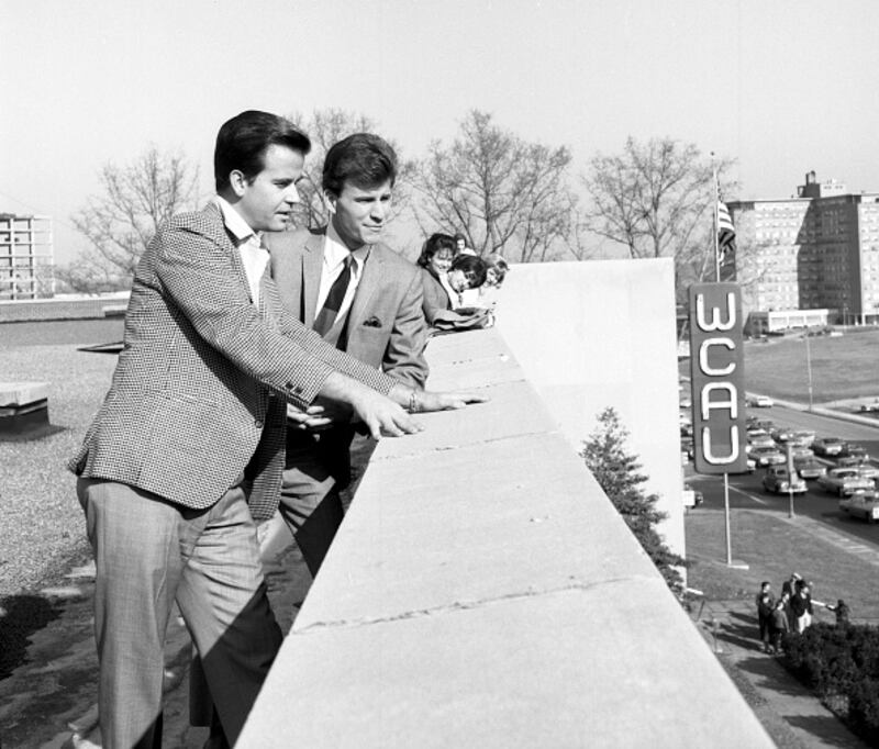 Bobby Rydell through the years LOS ANGELES - MARCH 15: "Where The Action Is" music special taped on location at WCAU, Philadelphia, PA, on March 15, 1965. From left, Executive Producer Dick Clark stands with singer Bobby Rydell on the roof of WCAU. (Photo by CBS via Getty Images) (CBS Photo Archive/CBS via Getty Images)