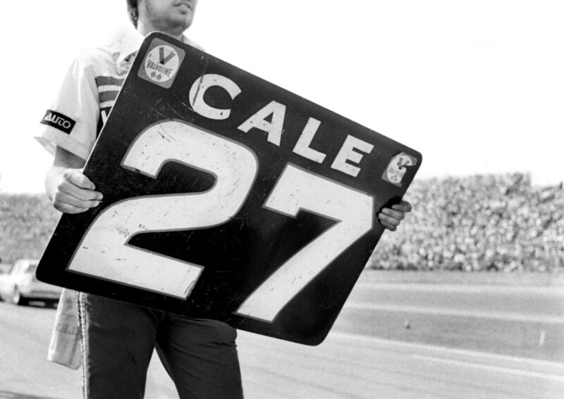 Cale Yarborough: A member of NASCAR driver Cale Yarborough's racing crew holds up the team's pit stop sign prior to the start of the 1982 Daytona 500. (Robert Alexander/Getty Images)