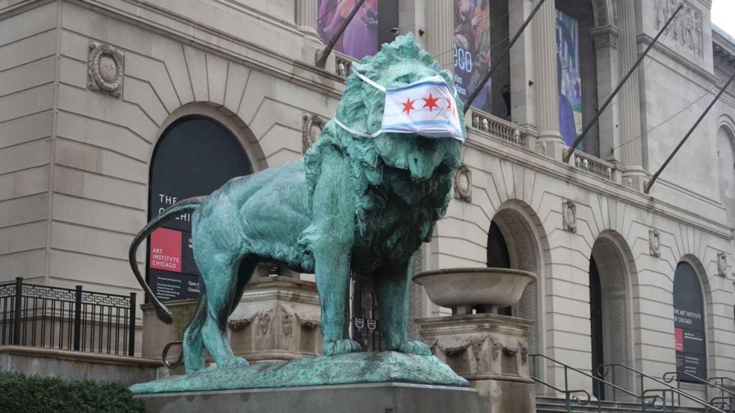 The lion that guards Chicago’s Art Institute used to have a face mask as a symbol of protection from the COVID-19 pandemic.