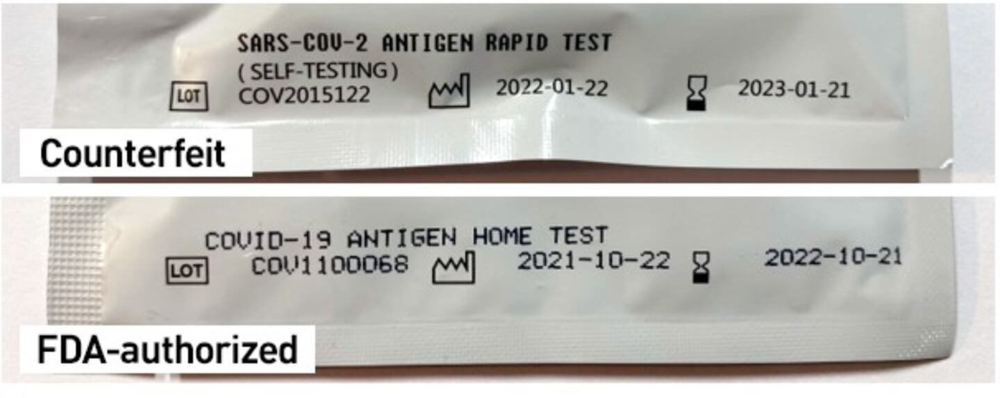 There have been two brands already targeted by counterfeiters. In their news release, the FDA warned that “counterfeit versions of the FDA-authorized Flowflex COVID-19 Antigen Home Tests are being illegally imported and distributed in the United States through unauthorized distributors and resellers who have no connection to ACON Laboratories, Inc.”