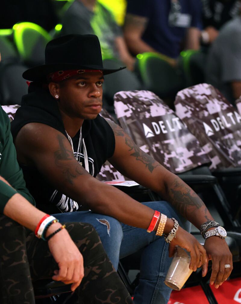 Country singer Jimmie Allen through the years. LOS ANGELES, CALIFORNIA - OCTOBER 24: Musician Jimmie Allen sits courtside during a game between the Memphis Grizzlies and the Los Angeles Lakers at Staples Center on October 24, 2021 in Los Angeles, California. (Photo by Harry How/Getty Images) (Harry How/Getty Images)