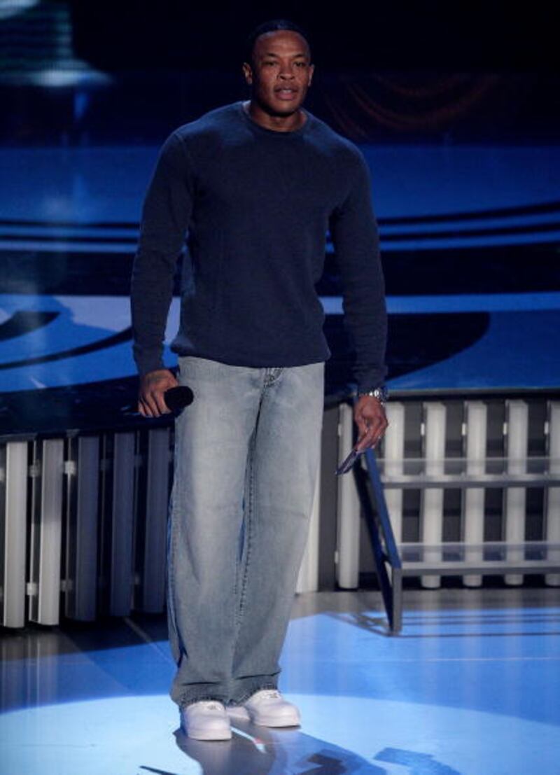 Photos: Dr. Dre through the years 2021: Dr. Dre speaks onstage during the 36th annual Rock & Roll Hall of Fame Induction Ceremony at Rocket Mortgage Fieldhouse on October 30, 2021, in Cleveland, Ohio. (Dimitrios Kambouris/Getty Images for The Rock and Roll Hall of Fame)
