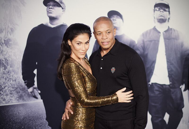 Photos: Dr. Dre through the years 2015: Dr. Dre and wife Nicole Young attend the premiere of "Straight Outta Compton" at Microsoft Theater on August 10, 2015, in Los Angeles. (Jason Kempin/Getty Images)