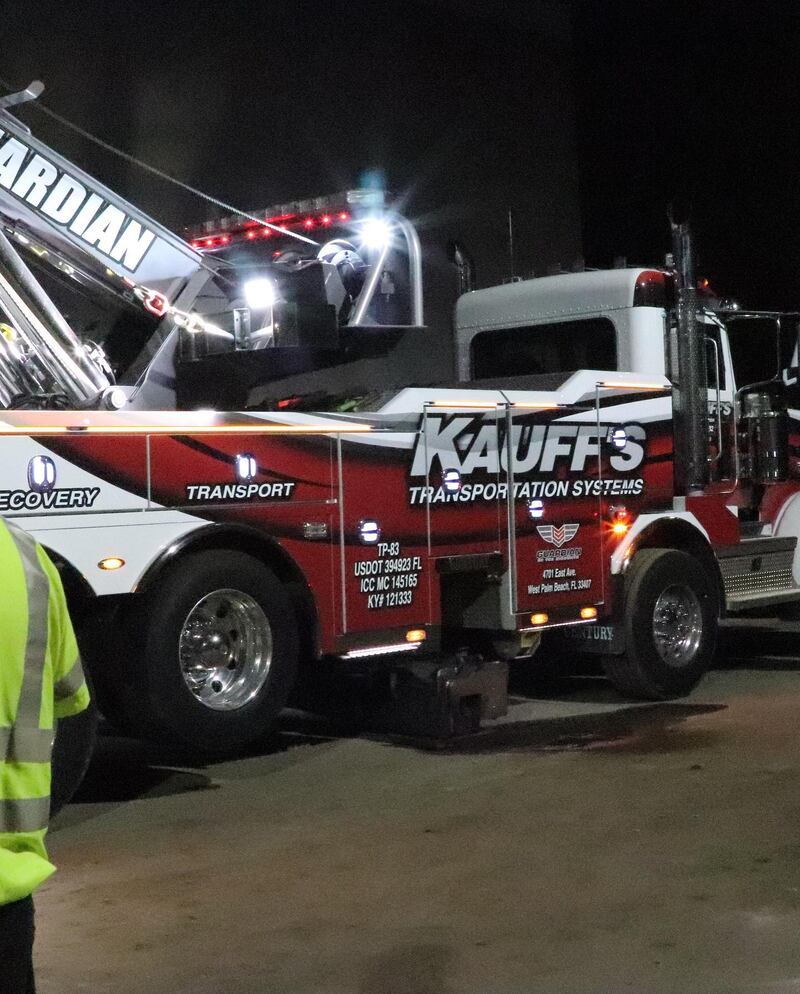 A towing company brought in a rotator wrecker to remove the vehicle using a 45-foot extension of the wrecker’s boom and several 50,000-pound winches, WPTV reported.