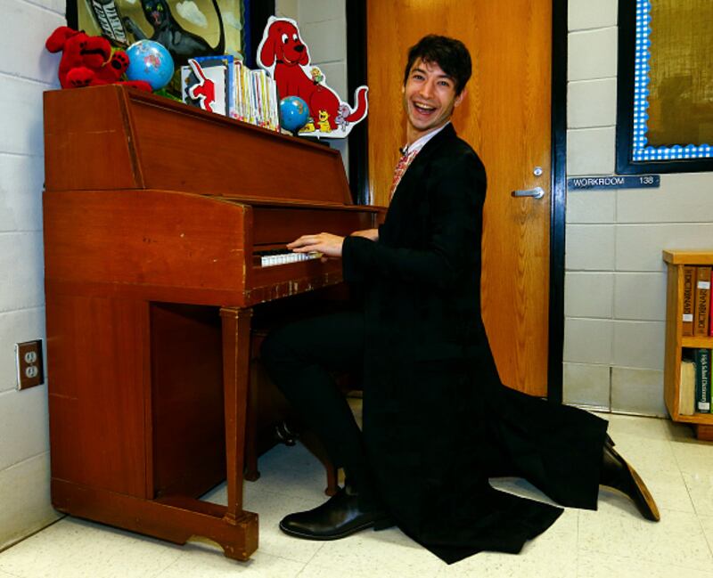 Through the years Ezra Miller from Fantastic Beasts: The Crimes Of Grindelwald plays the piano as he helps celebrate Wizarding World Day at Parkside Middle School on November 1, 2018 in Baileyton, Alabama. (Photo by Butch Dill/Getty Images for Warner Bros.) (Butch Dill/Getty Images for Warner Bros.)