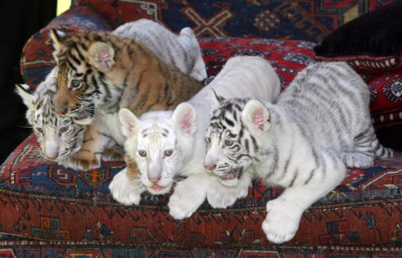 The Mirage LAS VEGAS - JUNE 12: Six-week-old tiger cubs are displayed June 12, 2008 in Las Vegas, Nevada. The cubs will take up residence at Siegfried & Roy's Secret Garden and Dolphin Habitat at The Mirage Hotel & Casino this weekend. (Photo by Ethan Miller/Getty Images) (Ethan Miller/Getty Images)
