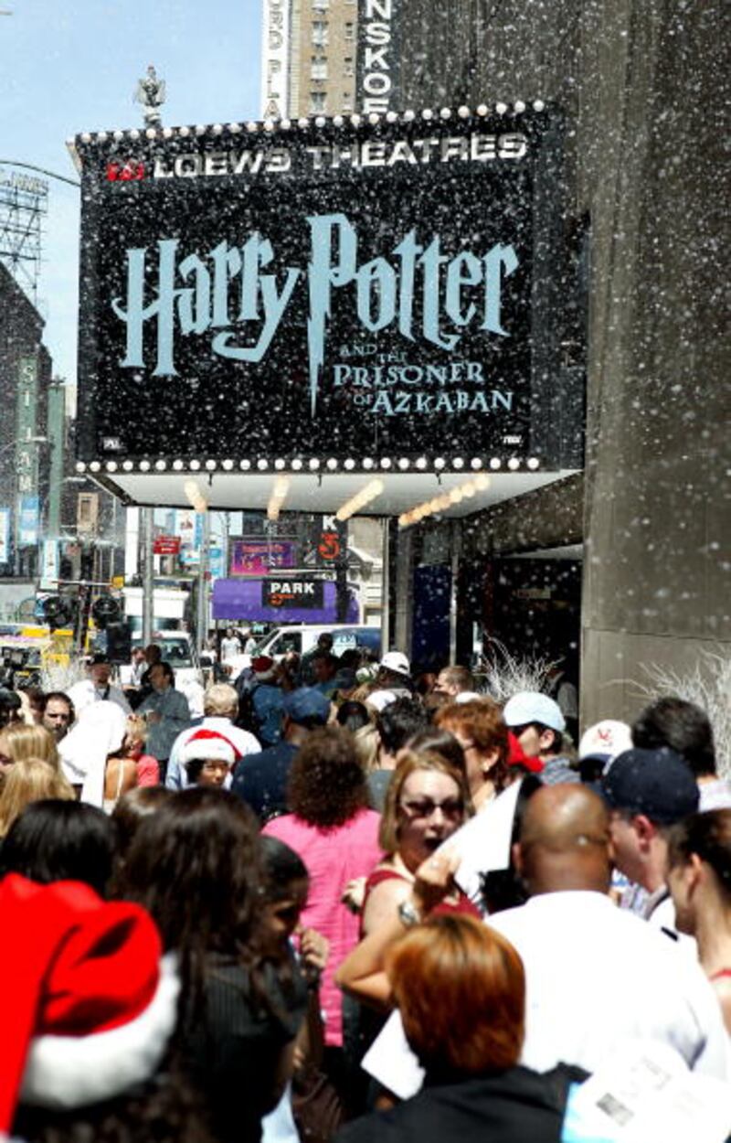 LOOK BACK: 20 Years Of Harry Potter Pandemonium NEW YORK - JUNE 4: Fans wait in line to see "Harry Potter and the Prisoner of Azkaban" which will show the trailer for "The Polar Express" at Loews Astor Plaza in Times Square June 4, 2004 in New York City. (Photo by Scott Gries/Getty Images) (Scott Gries)