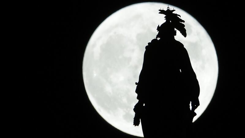 OCTOBER 09 \The Hunter’s Moon rises behind The Statue of Freedom that crowns the U.S. Capitol dome on October 9, 2022 in Washington, DC. The Hunter’s Moon historically signaled the time for hunting with brighter moon light in preparation for the upcoming cold winter. (Alex Wong/Getty Images)
