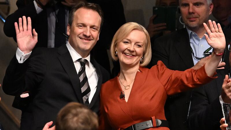 OCTOBER 05 Prime Minister Liz Truss with husband Hugh O'Leary following her keynote speech on the final day of the Conservative Party Conference on October 5, 2022 in Birmingham, England. This year the Conservative Party Conference will be looking at "Getting Britain Moving" with more jobs and higher salaries. (Leon Neal/Getty Images)