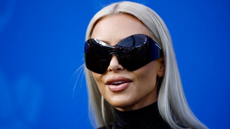 OCTOBER 09 Kim Kardashian attends the game between the Dallas Cowboys and the Los Angeles Rams at SoFi Stadium on October 09, 2022 in Inglewood, California. (Ronald Martinez/Getty Images)