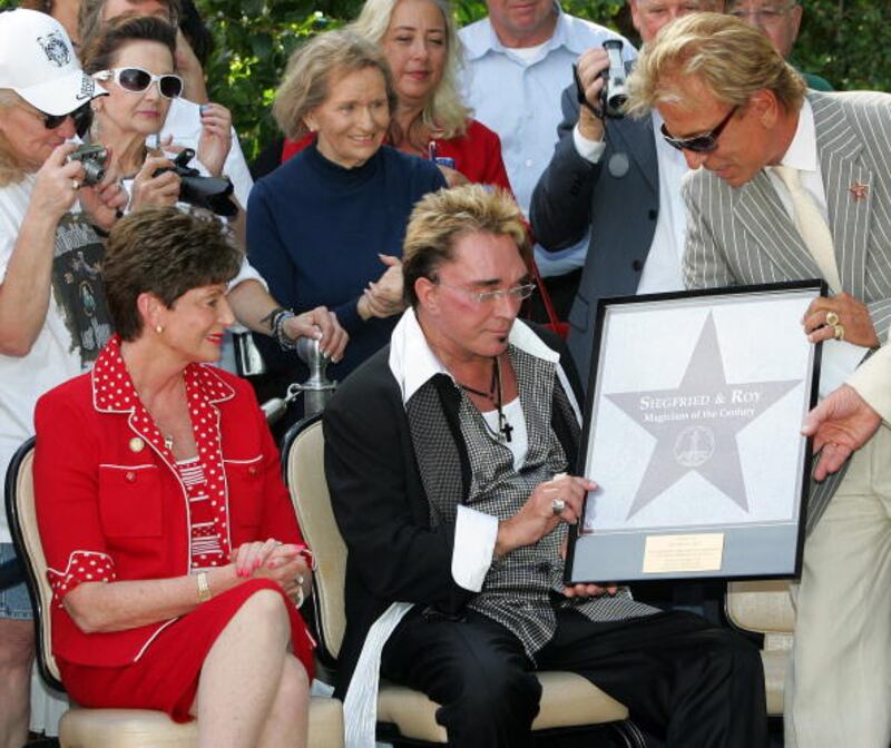 Siegfried & Roy through the years Roy Horn (L) and Siegfried Fischbacher of the illusionist duo Siegfried & Roy speak outside The Mirage Hotel & Casino during their Las Vegas Walk of Stars dedication ceremony on Horn's 62nd birthday October 3, 2006 in Las Vegas, Nevada. (Photo by Ethan Miller/Getty Images) (Ethan Miller/Getty Images)