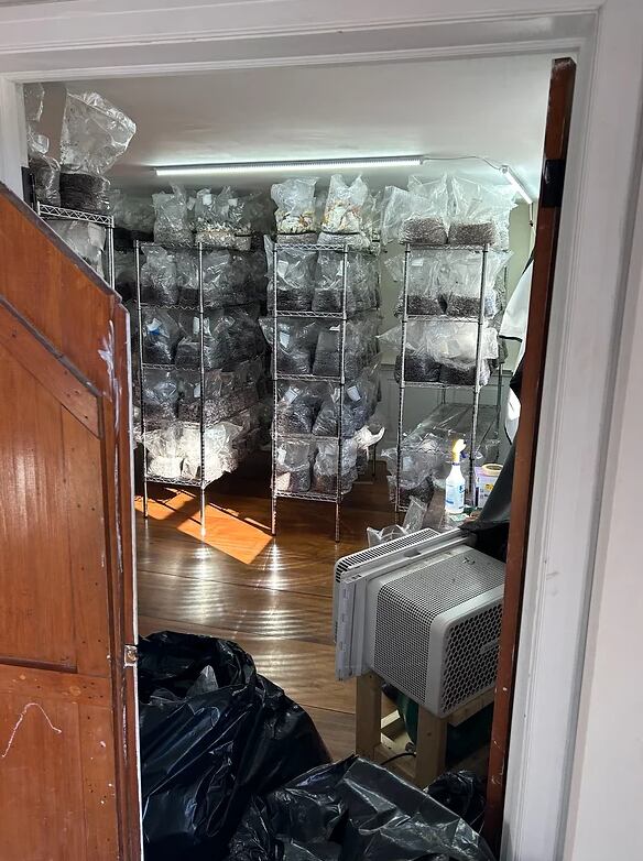 Upon receiving a warrant, investigators checked the house and found a large “mushroom-growing factory” containing psilocybin mushrooms, which are a Schedule 1 controlled substance, in various stages of growth, according to the news release.