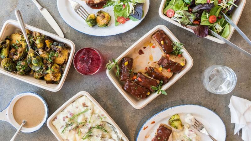 Featuring: The Farmhouse Feast, which includes a choice between sliced ham and sliced turkey breast. The meal includes dressing, mashed potatoes, corn, green beans, cranberry relish, gravy, rolls, and Cherry Supreme Pie. You can place your orders up until Friday for pickup on Saturday.