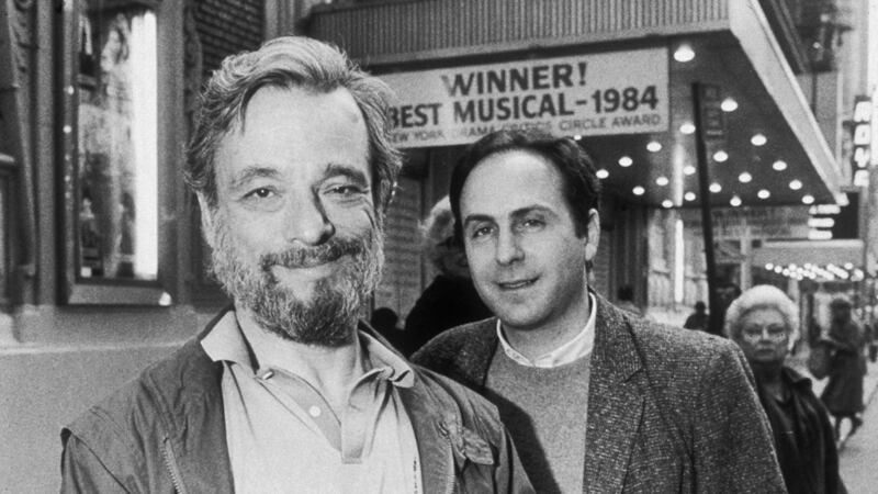 Stephen Sondheim through the years 1985: American composer Stephen Sondheim and playwright James Lapine pose in front of the marquee of the Booth Theatre on 45th Street, New York City. They won the Pulitzer Prize and the Tony Award for their musical, 'Sunday In The Park With George,' playing at the theatre. (Sara Krulwich/New York Times Co./Getty Images, File)
