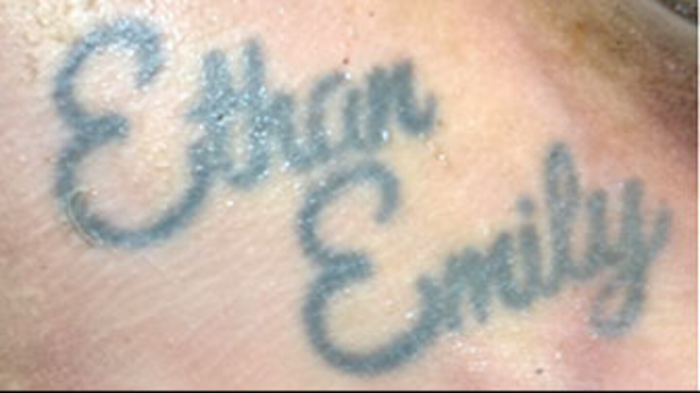 On the woman’s right foot was a tattoo of the names Ethan and Emily, according to investigators.