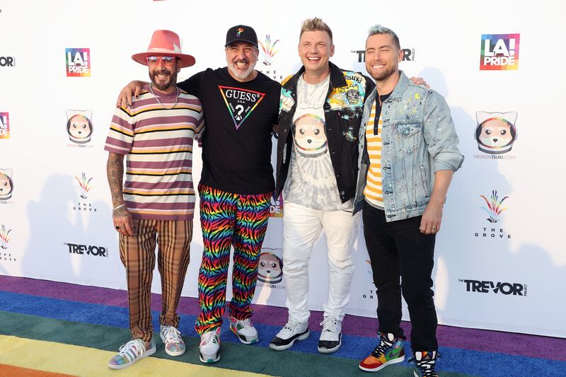 Photos: Lance Bass through the years 2021: AJ McLean of Backstreet Boys, Joey Fatone of 'N Sync, Nick Carter of Backstreet Boys and Lance Bass of 'N Sync attend "Bingo Under the Stars" in celebration of Pride at the Grove on June 18, 2021, in Los Angeles. (Kevin Winter/Getty Images)