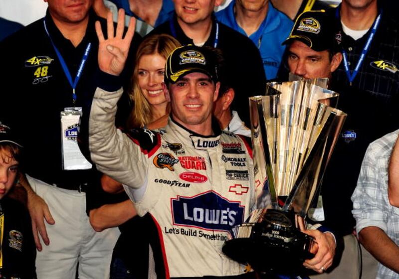 Through the years HOMESTEAD, FL - NOVEMBER 22: Jimmie Johnson, driver of the #48 Lowe's Chevrolet, celebrates after winning the NASCAR Sprint Cup Series Championship after finishing in fifth place in the Ford 400 at Homestead-Miami Speedway on November 22, 2009 in Homestead, Florida. Johnson becomes the first driver in the history of NASCAR to win four consecutive championships since the sports inception in 1949.during the NASCAR Sprint Cup Series Ford 400 at Homestead-Miami Speedway on November 22, 2009 in Homestead, Florida. (Photo by Sam Greenwood/Getty Images) (Sam Greenwood/Getty Images)