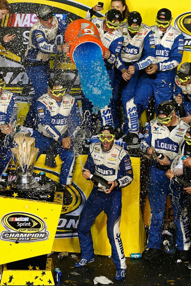 Through the years HOMESTEAD, FL - NOVEMBER 20: (EDITORS NOTE: Retransmission with alternate crop.) Jimmie Johnson, driver of the #48 Lowe's Chevrolet, celebrates with his team in Victory Lane after winning the NASCAR Sprint Cup Series Ford EcoBoost 400 and the 2016 NASCAR Sprint Cup Series Championship at Homestead-Miami Speedway on November 20, 2016 in Homestead, Florida. Johnson wins a record-tying 7th NASCAR title. (Photo by Chris Trotman/Getty Images) (Chris Trotman/Getty Images)