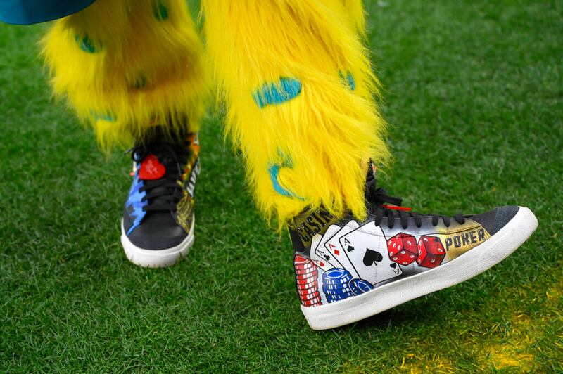 2022 Pro Bowl Jaxon de Ville, the Jacksonville Jaguars mascot, wears Las Vegas-themed shoes during the Pro Bowl NFL football game between the AFC and the NFC, Sunday, Feb. 6, 2022, in Las Vegas. (AP Photo/David Becker) (David Becker/AP)