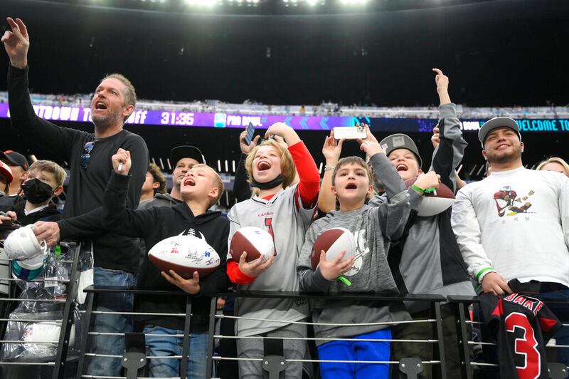 2022 Pro Bowl Fans call out to players during warmups before the Pro Bowl NFL football game between the AFC and the NFC, Sunday, Feb. 6, 2022, in Las Vegas. (AP Photo/David Becker) (David Becker/AP)
