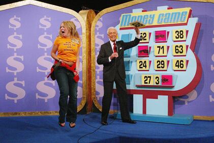 Bob Barker through the years LOS ANGELES, CA - APRIL 19: (L to R) A contestant and host Bob Barker during "The Price Is Right" million dollar spectacular celebrating host Bob Barker's induction into the Academy of Television Arts and Sciences' Hall of Fame at the CBS Television Network on April 19, 2004 in Los Angeles, California. Host Bob Barker will be inducted into the Hall of Fame later this spring. (Photo by Frederick M. Brown/Getty Images). *** Local Caption *** Contestant;Bob Barker (Frederick M. Brown)