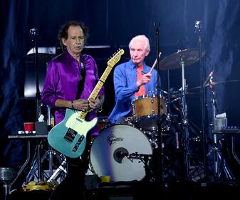 2019 Keith Richards (L) and Charlie Watts of The Rolling Stones perform onstage at Rose Bowl on August 22, 2019 in Pasadena, California. (Photo by Kevin Winter/Getty Images) (Kevin Winter/Getty Images)
