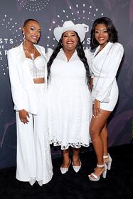 Photos: CMT Artists of the Year 2022 red carpet Trea Swindle, Danica Hart and Devynn Hart of Chapel Hart attend the 2022 CMT Artists of the Year at Schermerhorn Symphony Center on October 12, 2022, in Nashville, Tennessee. (Jason Kempin/Getty Images for CMT)