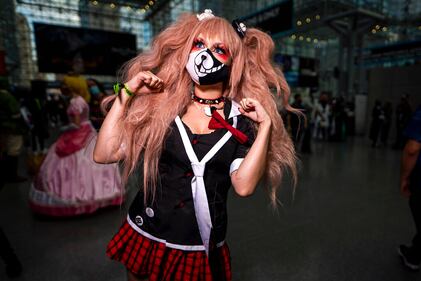 2021 NY Comic Con-Day 2 An attendee dressed as Junko Enoshima form "Danganronpa" poses during New York Comic Con at the Jacob K. Javits Convention Center on Friday, Oct. 8, 2021, in New York. (Photo by Charles Sykes/Invision/AP) (Charles Sykes/Charles Sykes/Invision/AP)
